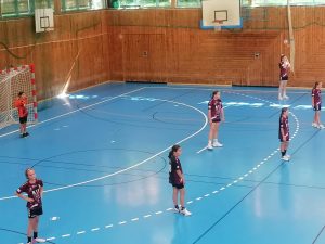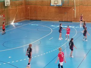 Gleich zum Start stand ein schweres Duell gegen den TSV Gilching auf dem Programm. Die Gilchingerinnen waren körperlich klar überlegen – viele mindestens einen Kopf größer – und nutzten diesen Vorteil konsequent. Einige unserer jungen Sportlerinnen waren vielleicht  noch etwas zu zögerlich, trotzdem ließ unter anderem das Zusammenspiel zwischen Rückraum und Kreis erkennen, welches Potenzial in der Mannschaft steckt. Trotz einer kämpferischen Abwehrarbeit musste sich das Team am Ende mit 13:20 geschlagen geben.