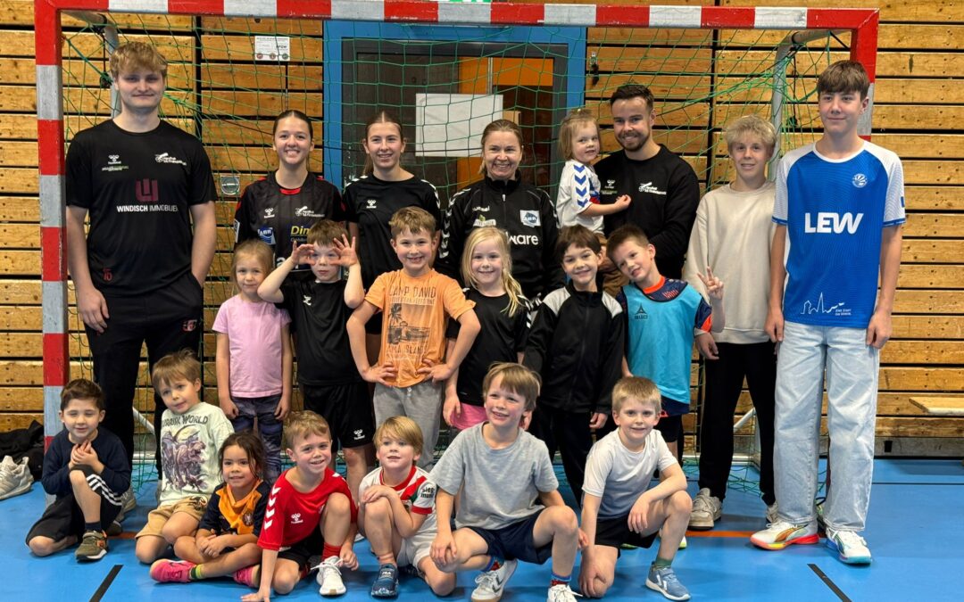 Ziemlich aufregend war das heutige Training für die kleinsten Panther. Die 4-6 jährigen Nachwuchshandballer haben prominenten Besuch von ihren Paten Cedric Riesner und Max Högl gehabt und sie waren total begeistert. Von Beginn an, zeigten die Bambinis was sie schon alles können und in ihrer Handball Karriere schon gelernt haben. Besonders als Vorbereitung für das morgige Nikolaus-Turnier war das Training mit den beiden großen Vorbildern optimal.